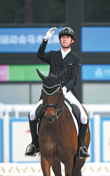 Gu Zhanzhao from Team Shanghai chose a particularly triumphalist piece of music from the movie The Hunger Games for his freestyle routine with his horse Qumulus-Quintus Ah in the equestrian dressage individual final at the 15th National Games in Guangdong province on Wednesday.