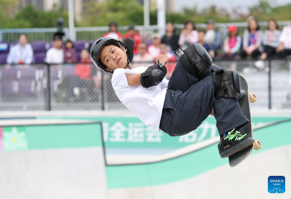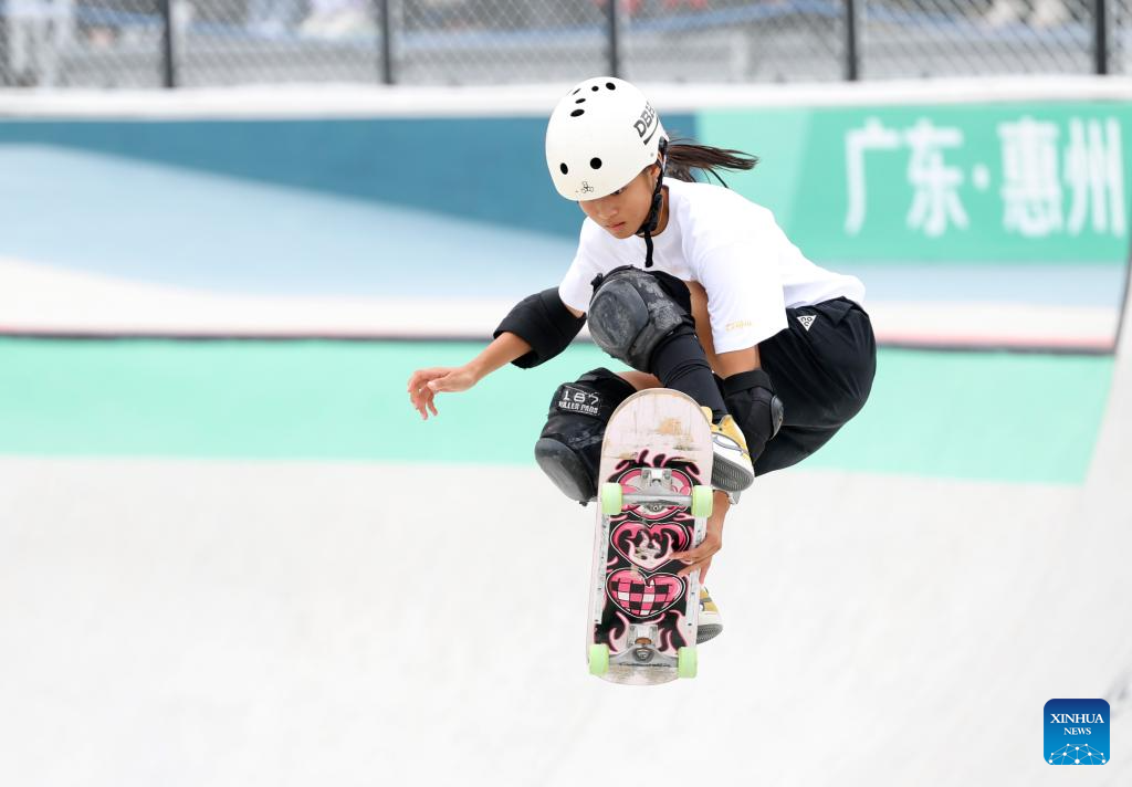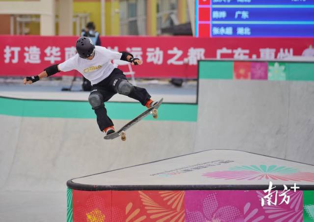 Guangdong put on an impressive show at the skateboarding finals of the 15th National Games, held in the southeastern city of Huizhou, clinching three golds, one silver, and one bronze in a dominant display.