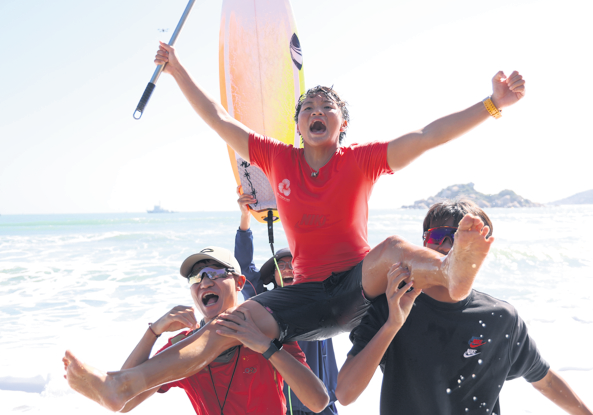 During the four-day surfing competition, held from Nov 13 to 16 at Qing'ao Bay on Nan'ao Island in Shantou, Guangdong province, the weather alternated between sunny and overcast, with waves ranging from powerful to choppy. However, for Sunday's final, the bay experienced the best conditions of the entire four-day event, with clear skies and consistent swells, providing Yang with a stable platform to showcase her high-flying jumps and explosive turns on the waves.