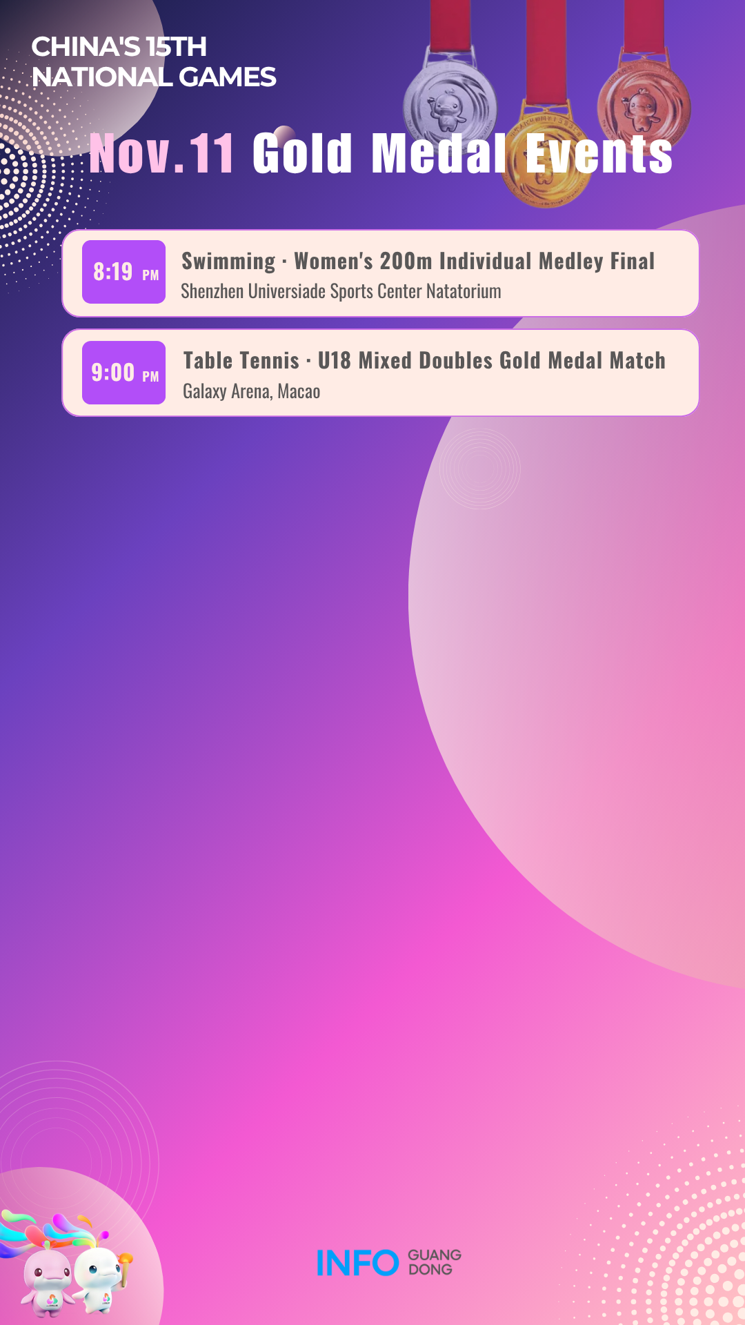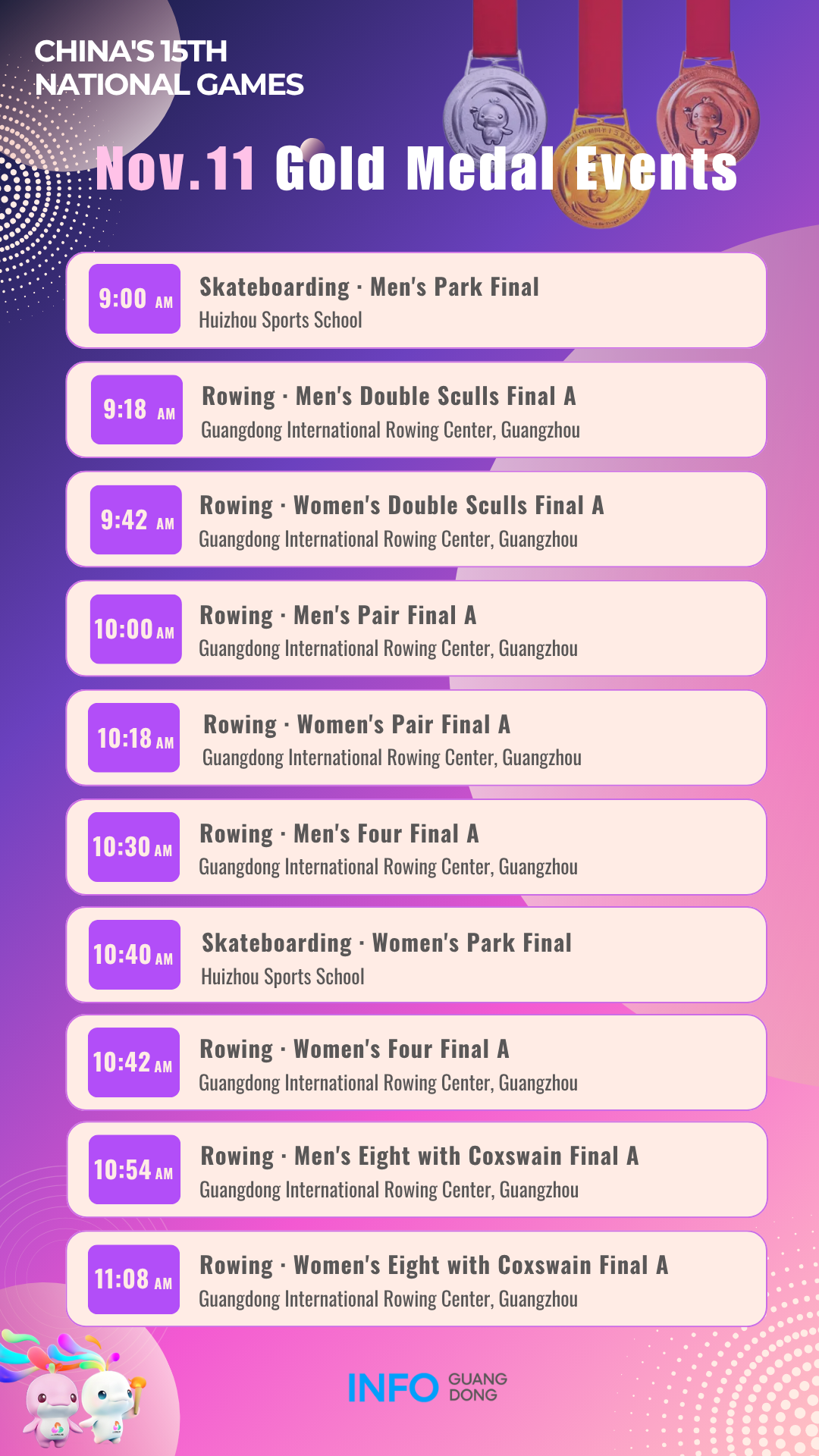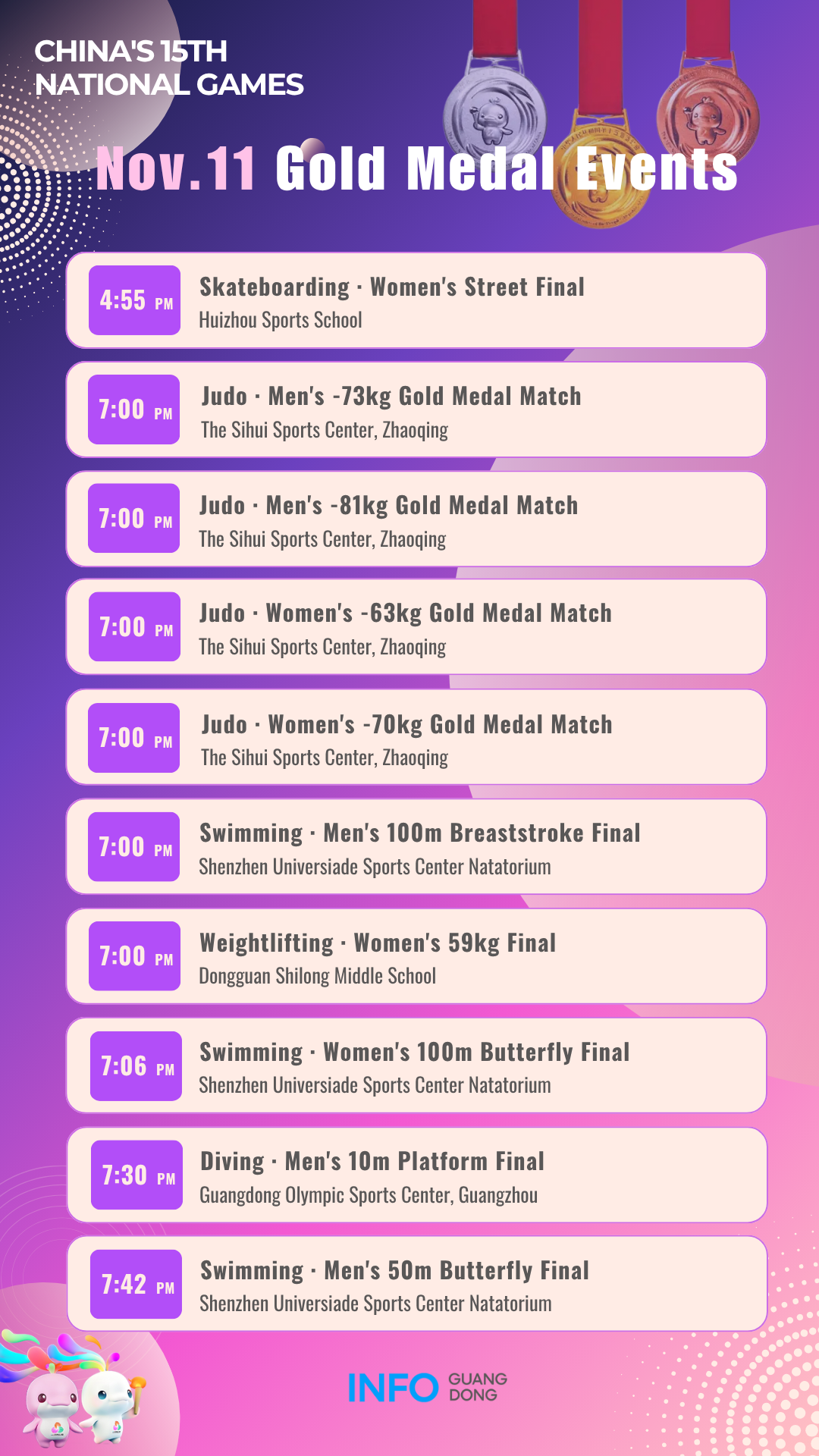 Gold medal events on November 11 at China's 15th National Games