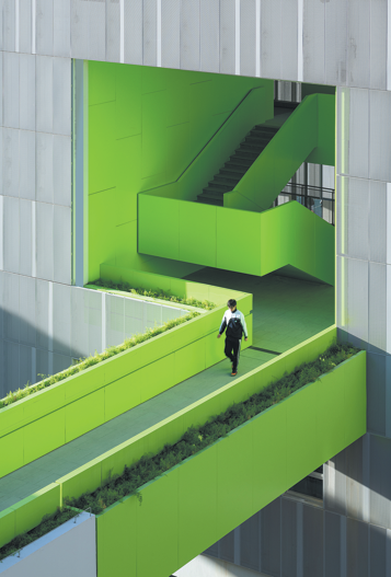 The team's solution was a "porous campus" strategy, in which they lifted the 400-meter running track onto a platform, carved light wells into the deep podium, and threaded aerial walkways, dubbed "The Loop", through the complex. This "multi-ground system" created a vertical tapestry of courtyards, roof gardens, and interconnected social spaces.