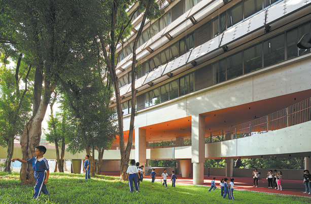 "This is the most fulfilling feedback I could ever receive," said He, the lead architect behind the school, which was feted as the first to crack the local puzzle of a high-density school in a city, with a population comparable to Beijing's, yet with a land area only one-eighth the size.