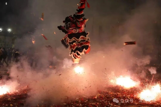 Qingyuan's most distinctive lion dance: performed entirely by women. Quilts form the lion's body, and bamboo frames shape the head.