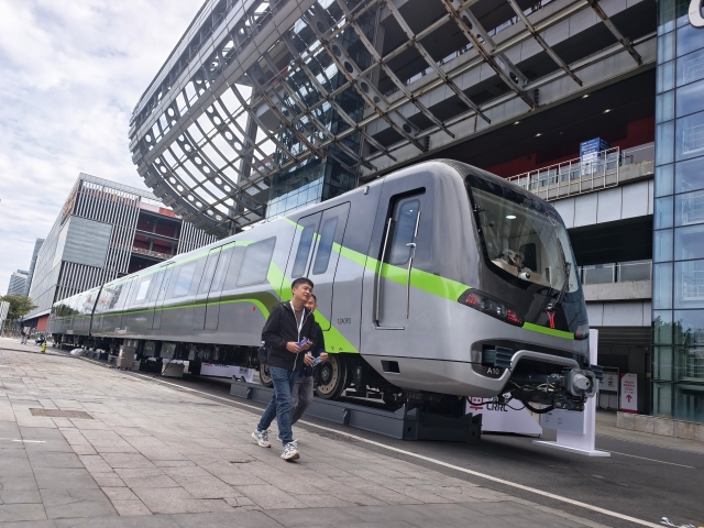 In the outdoor exhibition area, the Green Smart Metro Train drew large crowds. Co-developed by Guangzhou Metro and CRRC, the train features folding seats for greater passenger capacity, smart window screens, smart air supply, and other innovations.