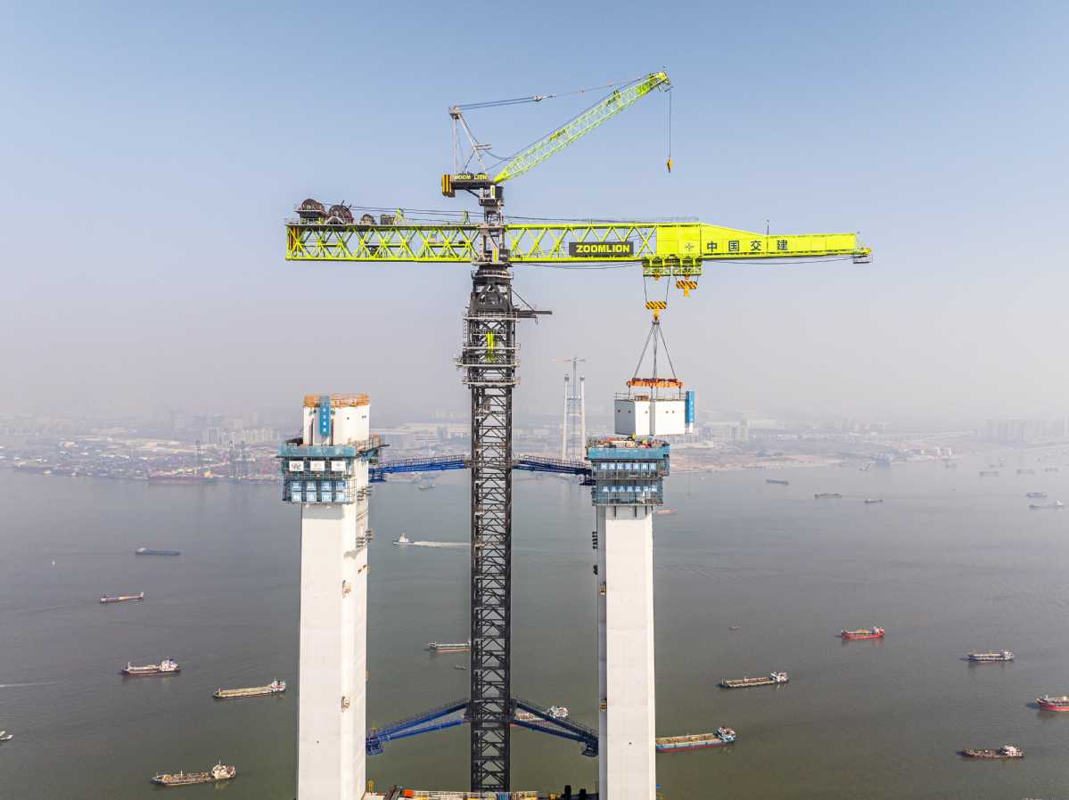 The bridge features a single span of 2,180 meters across the river. Upon completion, it will set world records for double-deck suspension bridges in terms of main span length, main tower height, anchorage foundation, main cable scale, and the number of lanes.