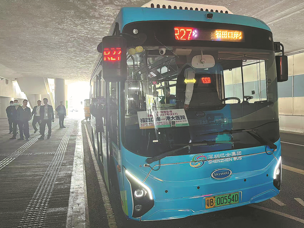 A cross-boundary shuttle bus is launched on Monday. LI BINGCUN/CHINA DAILY