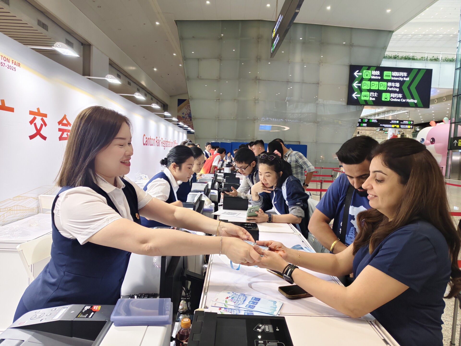 International buyers arriving in Guangzhou can now register for their Canton Fair passes directly at the airport free of charge. Registration counters are located at Terminal 1 (Gate A7), Terminal 2 (International Arrivals, Level 1), and the Pullman Hotel (West Wing, Level 2).