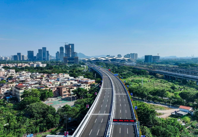 Residents traveling from central districts such as Haizhu and Yuexiu can now enter the expressway from Dongxiaonan Elevated Road, pass through the Haizhuwan Tunnel and the southern connection line, and reach Guangzhou South Railway Station's departure platform in 15 minutes, reducing the previous travel time of 30 to 40 minutes by more than half.