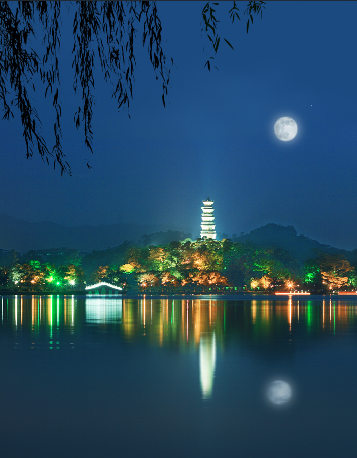 Huizhou's West Lake is known for its classical charm, with pavilions, bridges, and ancient towers reflected in the water. For moon-viewing, the best spots include Sizhou Pagoda (泗洲塔) and Gaobang Mountain (高榜山). Walking around the lake on Mid-Autumn Night, visitors can enjoy both the natural beauty of the moonlit water and the historic elegance of the lakeside architecture.