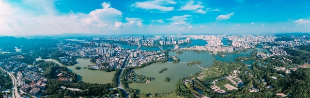 The aerial view of downtown Huizhou.