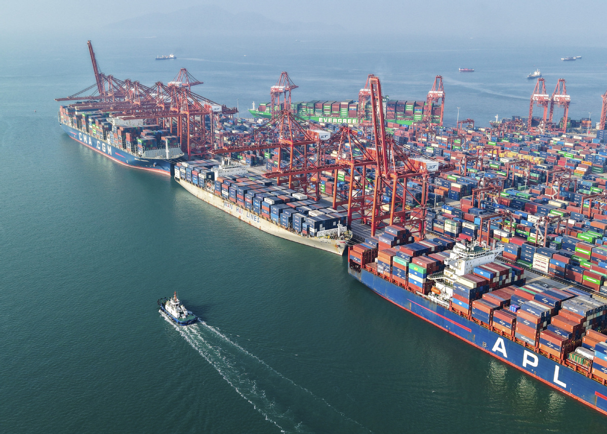 Fully loaded cargo ships are seen on Dec 9 at the Shekou Container Terminal in the western port area of Shenzhen, Guangdong province. [Photo/Xinhua]