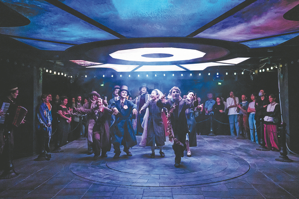 Scattered among the crowd, some performers play the accordion, cello, and violin, weaving a live musical score throughout the theatrical experience that deepens the drama and enriches every scene.