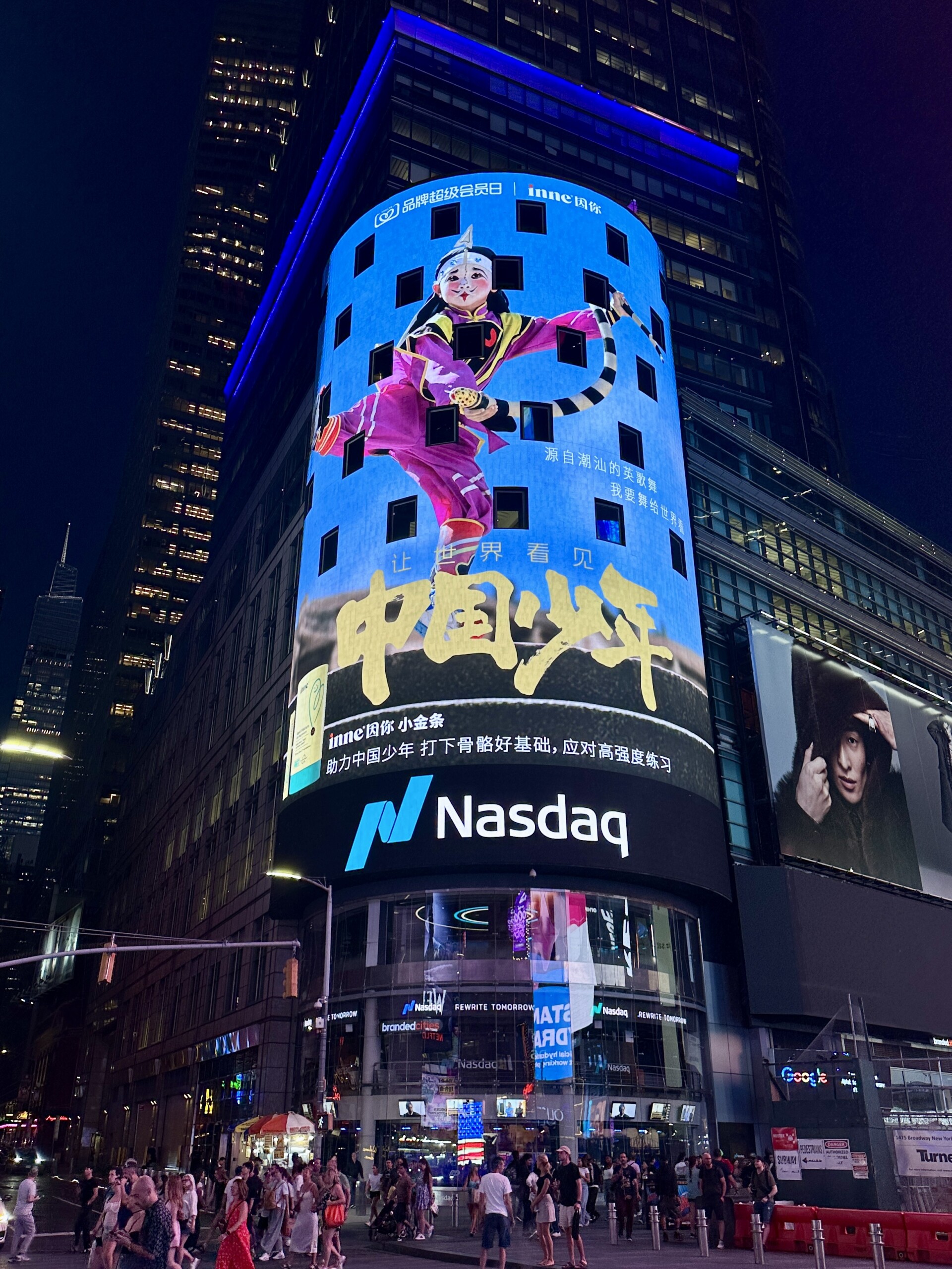 With his spirited, confident, and positive presence, Chen Kaiming has once again been featured as one of the Chinese youth representatives on international landmark screens.