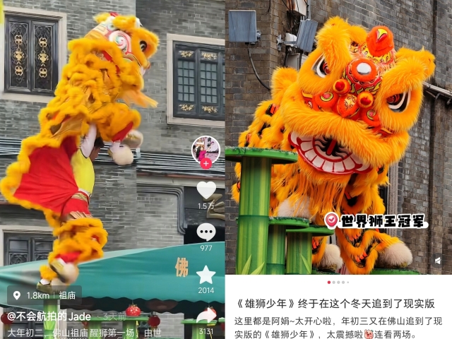 "I finally watched the lion dance at Foshan Ancestral Temple! It was amazing!" One visitor wrote on social media, "To see the lion dance at the Huang Feihong Memorial Hall on the fifth day of the Chinese New Year, I queued at Ancestral Temple as early as 8 a.m."