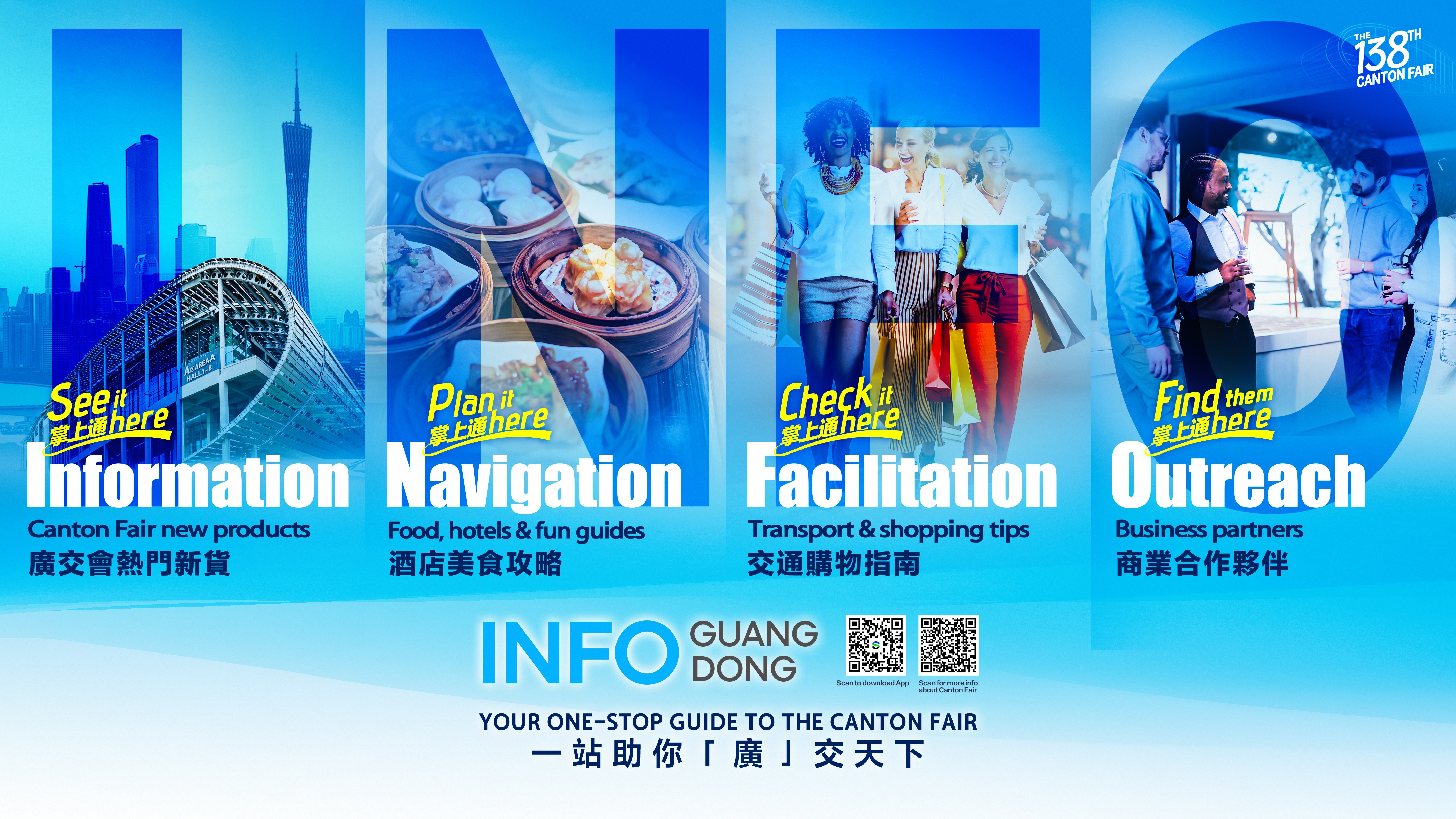 The 138th China Import and Export Fair (Canton Fair) will be held in Guangzhou from October 15 to November 4, 2025. As Guangdong's information service platform for international visitors, INFO Guangdong will launch a series of services and events to help global traders navigate the Fair efficiently and explore the province with ease.