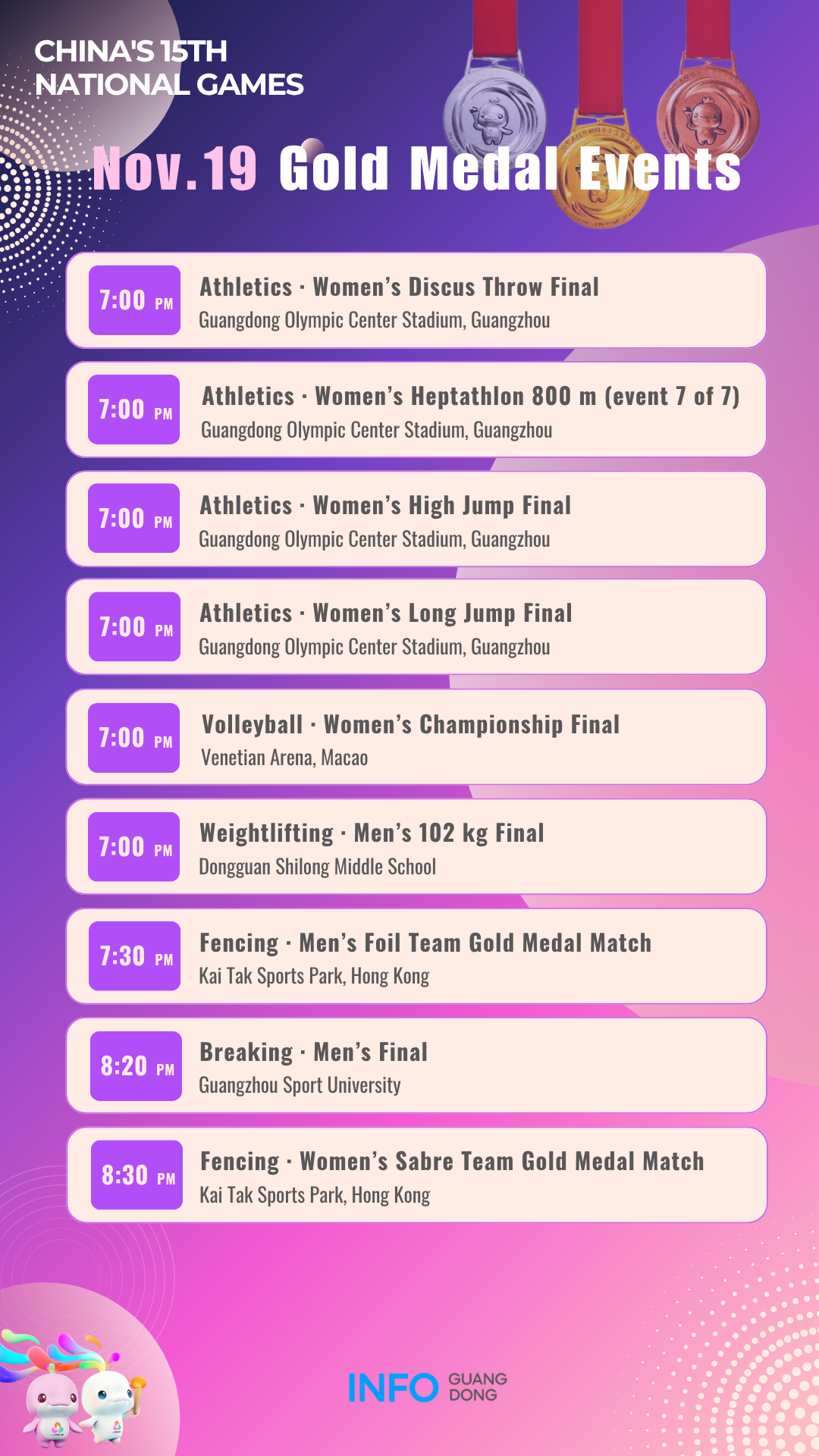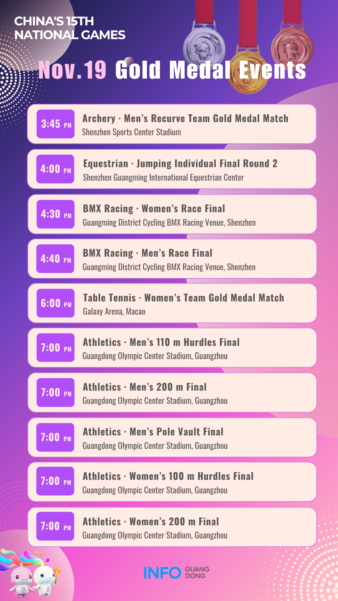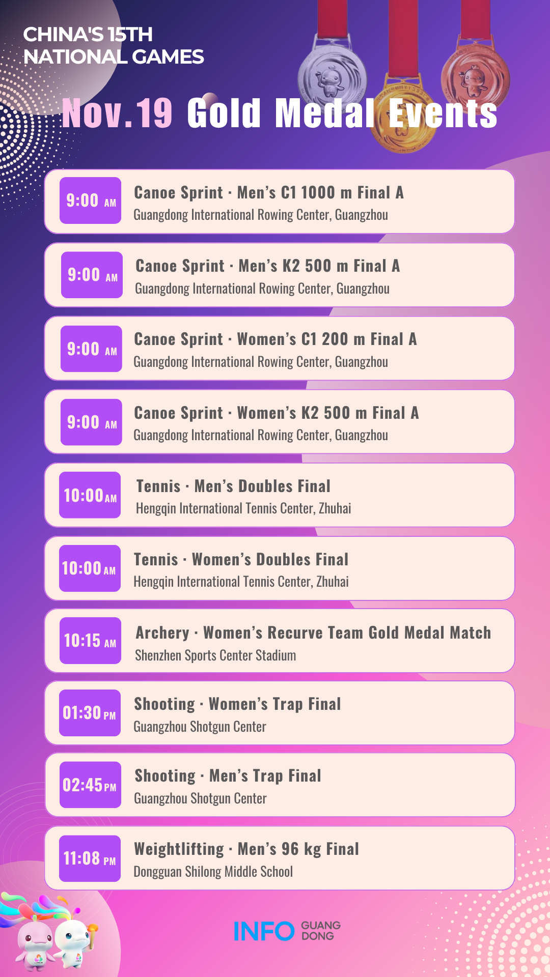 Gold medal events on November 19 at China's 15th National Games