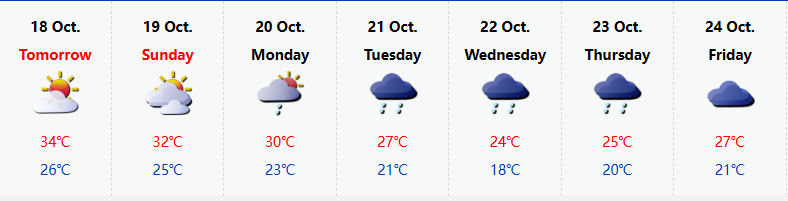According to @Weather Guangdong, from October 17 to 18, Guangdong will still be under the influence of the subtropical high, resulting in low humidity at lower levels. The weather will be predominantly sunny and dry, with scattered (thunder) showers in some areas and (light) fog in the morning and evening in select cities and counties.