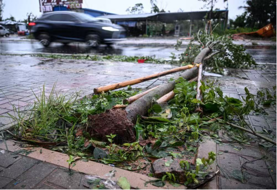 Fallen trees are seen in Hainan Province, following Typhoon Matmo.