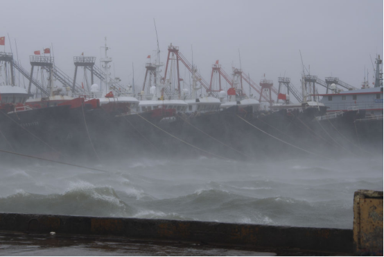 Typhoon-driven waves pounds the sea surface in Maoming City, Guangdong Province.
