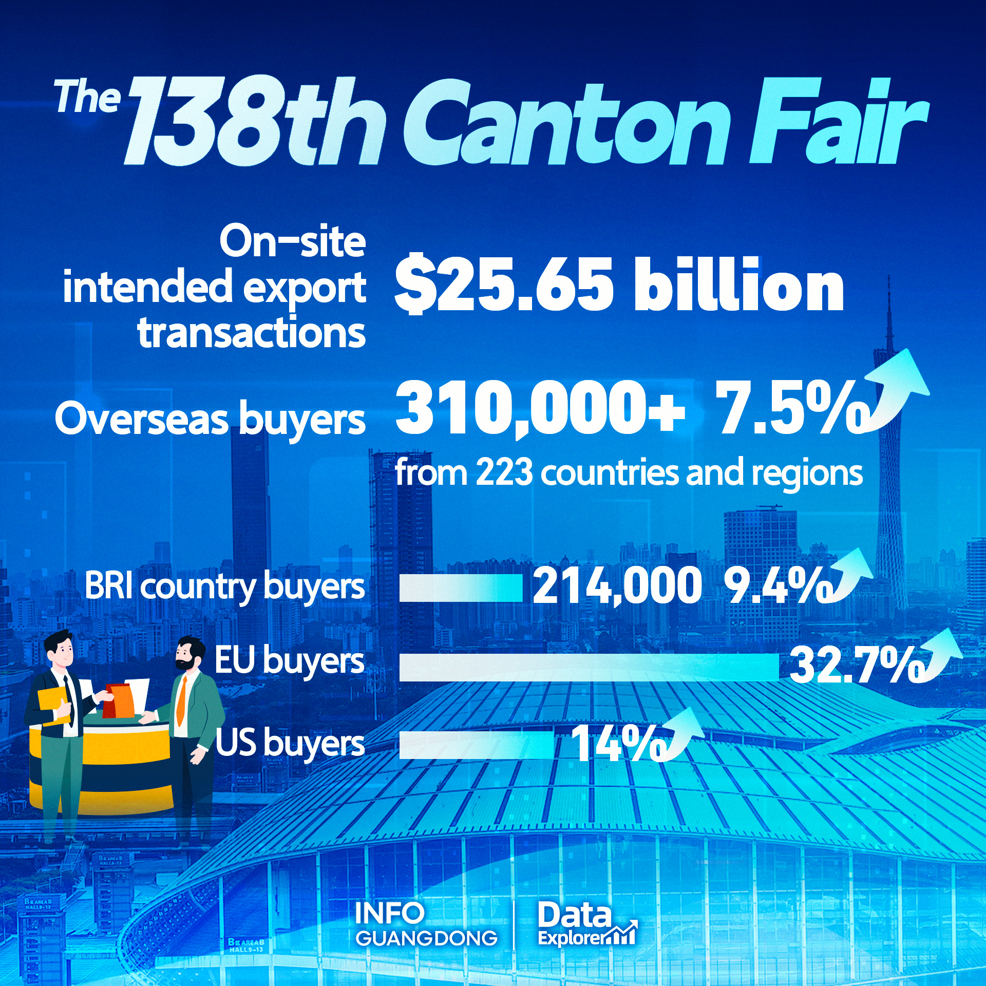 On November 4, the 138th Canton Fair successfully concluded, attracting over 310,000 overseas buyers from 223 countries and regions, an increase of 7.5% compared to the previous edition, reaching a new all-time high.