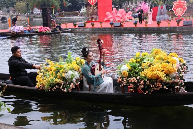 The Waterborne Flower Market will run from February 12 to 14, with related street and waterfront markets open from February 11 to 15. Now in its largest edition to date, the event has expanded from Liwan Lake to the entire Lychee Bay Scenic Area, the Cantonese Opera Art Museum and Yongqingfang. Visitors can board flower-decorated boats to cruise along the waterway, where floral displays and art installations add to the festive atmosphere.