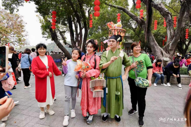 Across the three main zones, the market offers flowers, intangible cultural heritage crafts, creative souvenirs and local snacks. Fresh-cut blooms are sourced directly from the Lingnan Flower Market. Daily performances will feature Cantonese opera, Cantonese embroidery demonstrations, street dance and magic shows, while performers dressed in Hanfu — traditional Chinese clothing — interact with visitors. A stamp-collecting route linking key landmarks in Liwan adds an interactive layer to the experience.