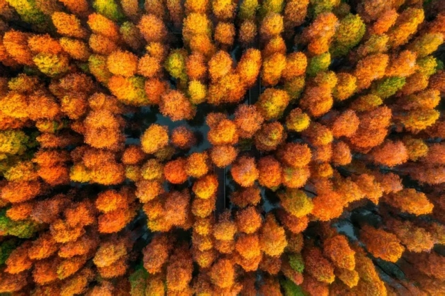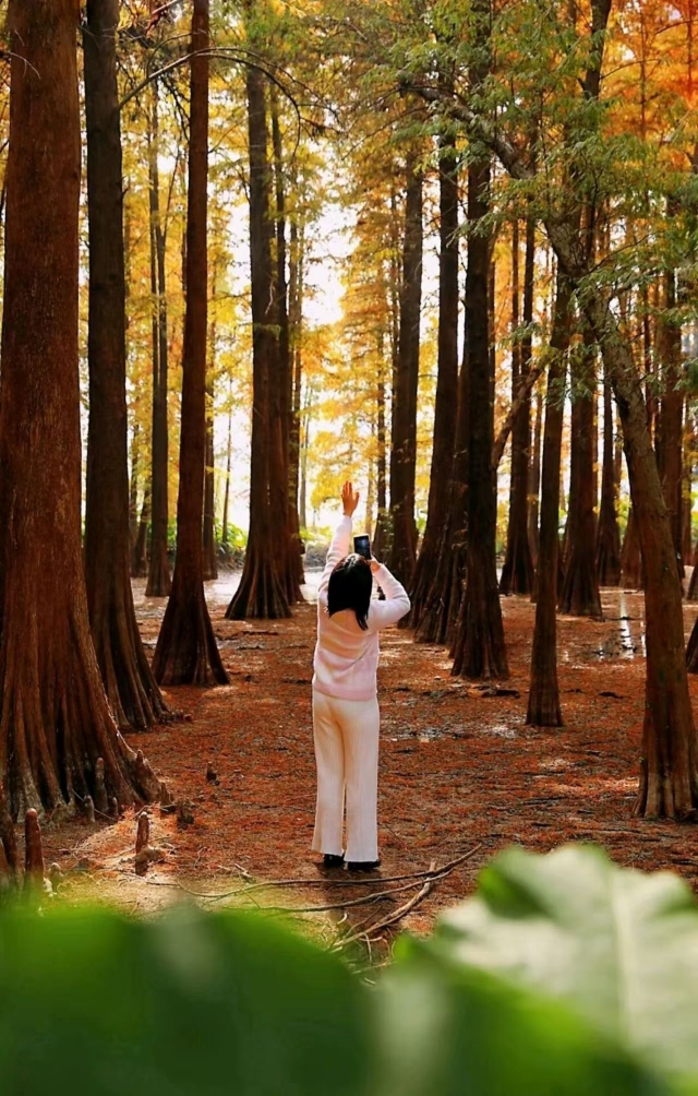 As the largest bald cypress cluster in Zhaoqing, this forest is known for its striking seasonal changes. The leaves transition from bright green in spring and summer to golden yellow and fiery orange-red in autumn and winter.