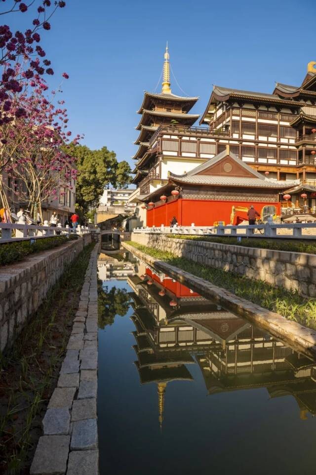 Shuangfeng Temple (双峰寺) exudes solemn elegance, while the old factory area beside Rongjiang West Lake Park (榕江西湖公园) has been transformed into a lush, green leisure space.