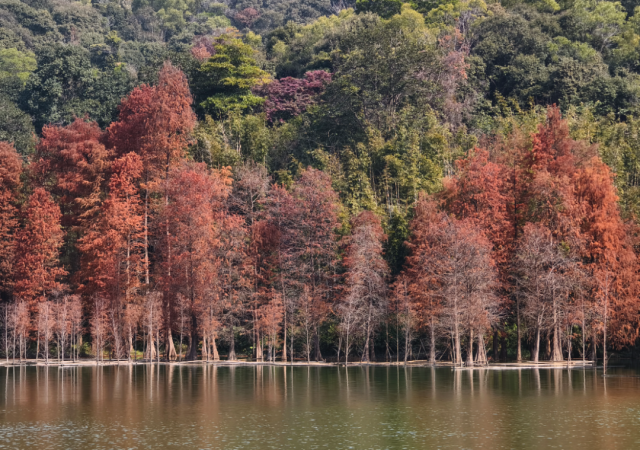 Huangpodong Reservoir: Located within the Mingzhulou Scenic Area of Baiyun Mountain, the bald cypresses here have already entered their prime viewing period.
