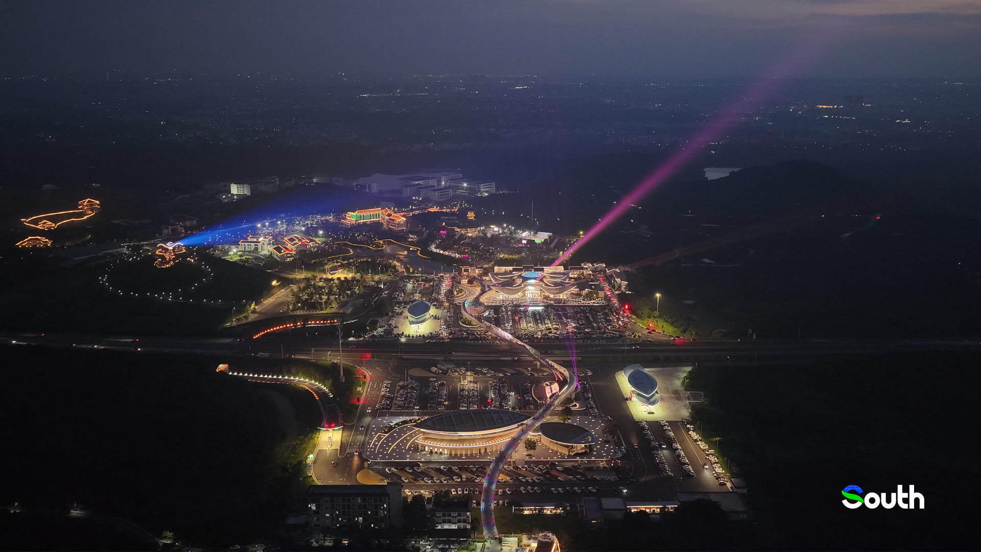 The brilliantly lit Baiqiao Service Area on the Baomao Expressway